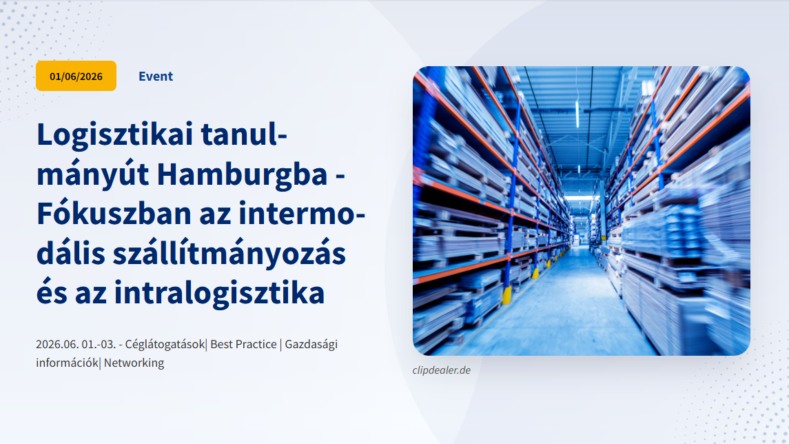 Ezúton hívjuk fel tagjaink figyelmét a Német-Magyar Ipari és Kereskedelmi Kamara (DUIHK) szervezésében megvalósuló szakmai tanulmányútra. A program fókuszában az intermodális szállítmányozás és az intralogisztika áll.